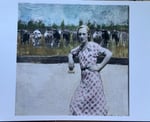 Vintage woman and cows quality art print